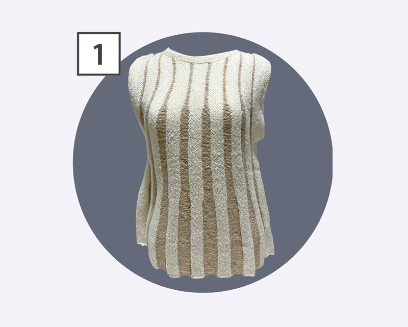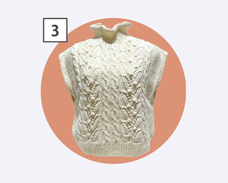 1.引き返し編みのフレアベスト 3,894円(税込)