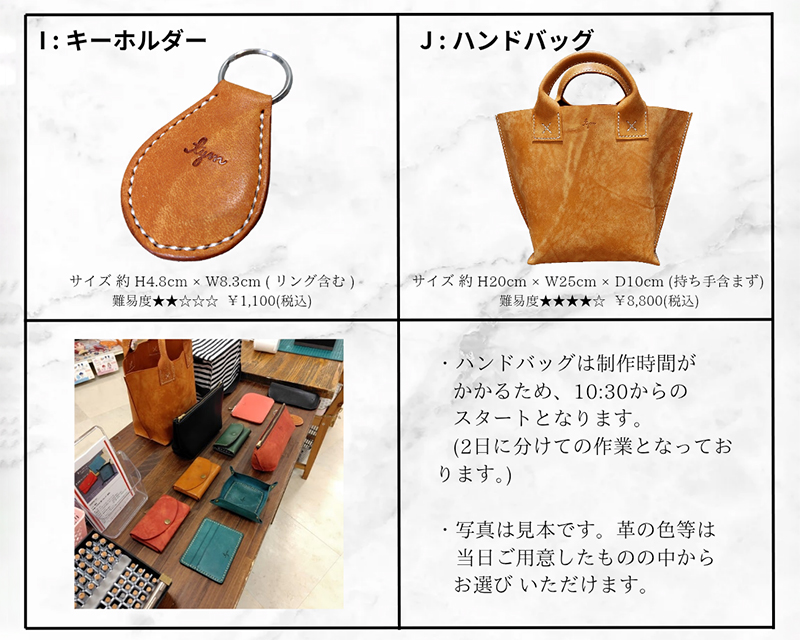 ※ハンドバッグは10:30からのスタートになり2日に分けての作業になります。