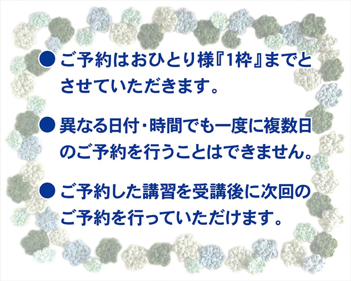 ※こちらの講習会はABCクラフトあべのキューズモール店にて毛糸をお買い上げいただいたお客様対象の講習です。