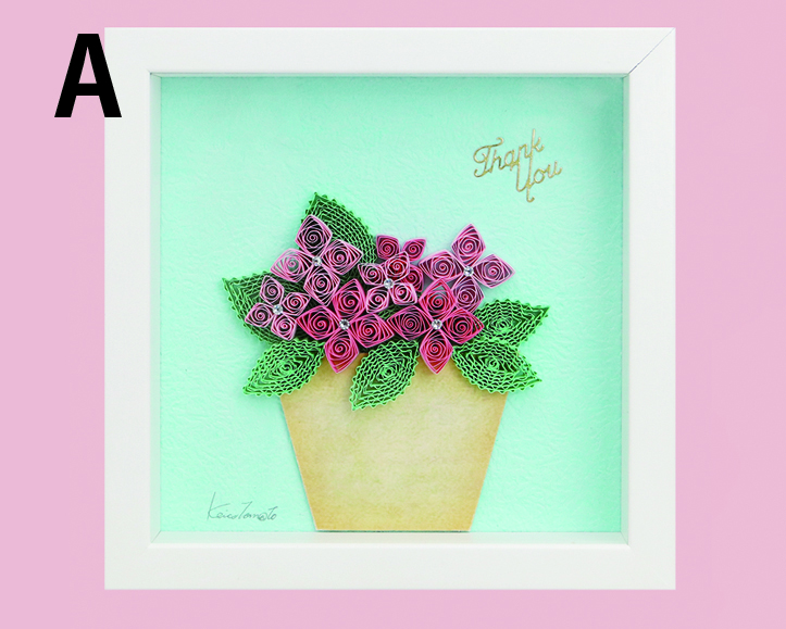 Bの体験講習は、お花を一色お選びいただきカードフレームに仕立てます。