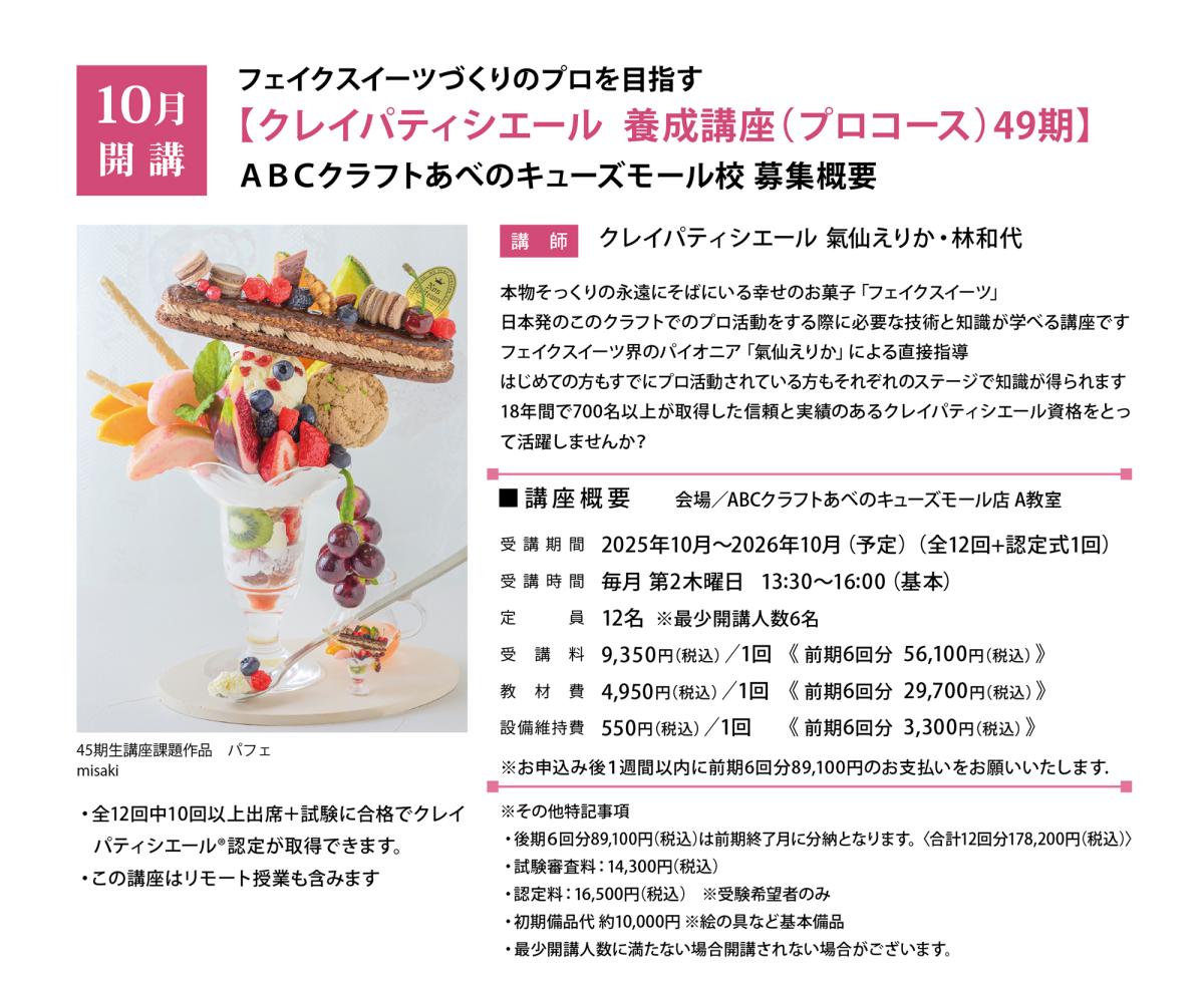 【クレイパティシエール 養成講座(プロコース)49期】