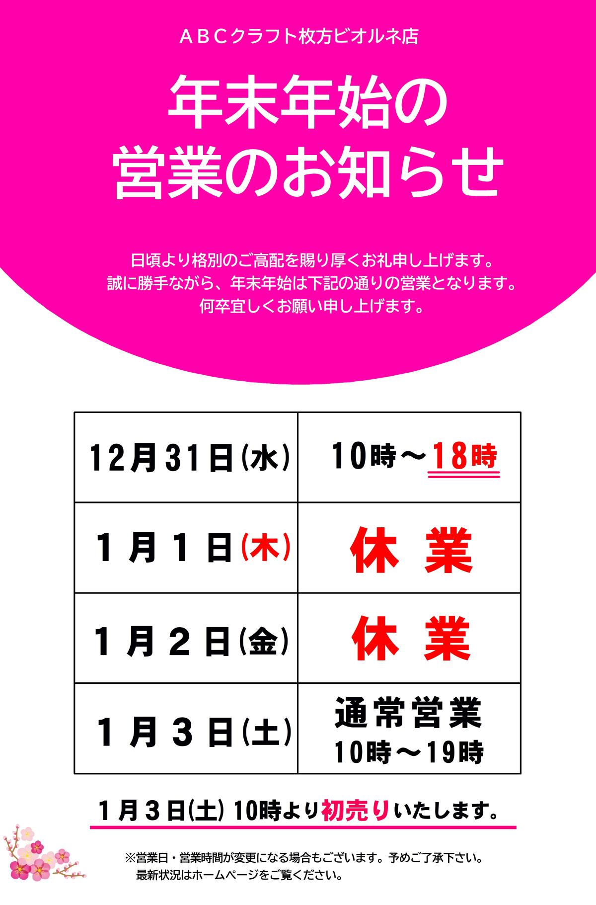 年末年始の営業のお知らせ【枚方ビオルネ店】