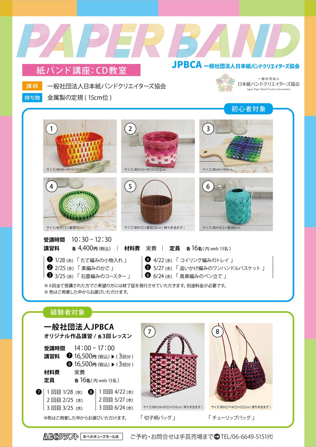 講師は、日本紙バンドクリエイターズ協会 / 初心者・経験者対象-- 初心者コース -- ・新講習スタート! ・初めての方にもわかりやすいレッスン。 ・毎回違う編み方ができます。 ・小物から大きいバスケットまでいろんなカゴを編んでみましょう! -- 経験者コース -- ・新講習スタート! ・⑦⑧は、JPBCAオリジナルのカゴバッグです。 ・3回レッスンで大型カゴバッグを作りましょう!