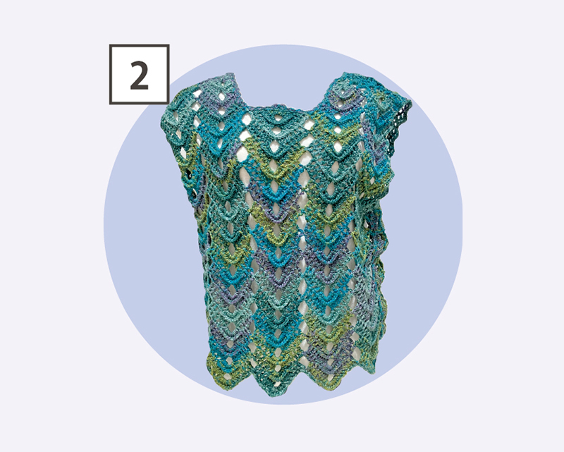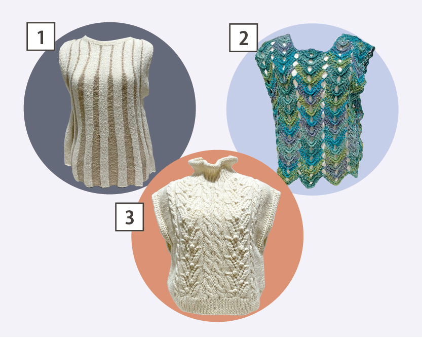1.引き返し編みのフレアベスト 3,894円(税込)