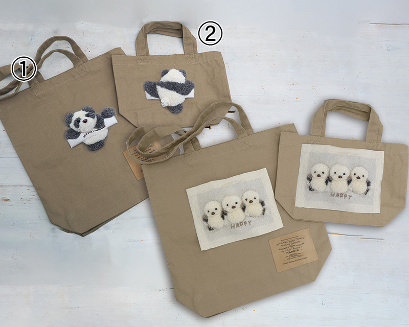 ご予約時にモチーフをA~C、バッグサイズを①または②からお選びください。