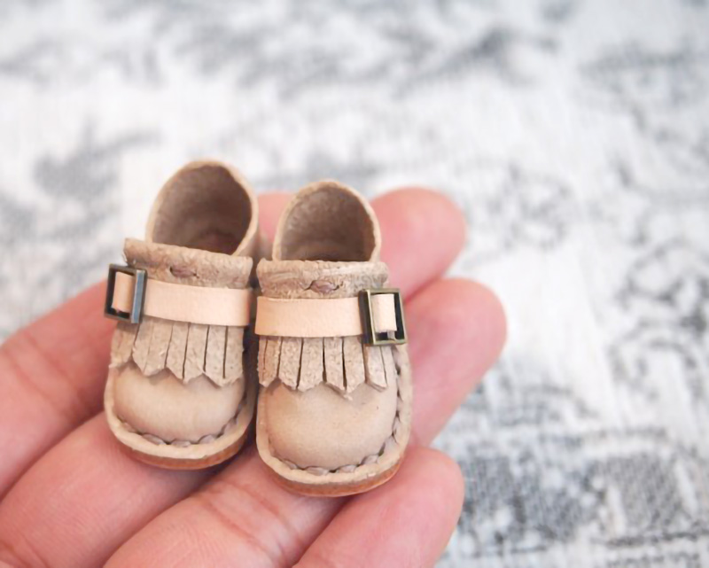 革で作る『フリンジバックルシューズ』