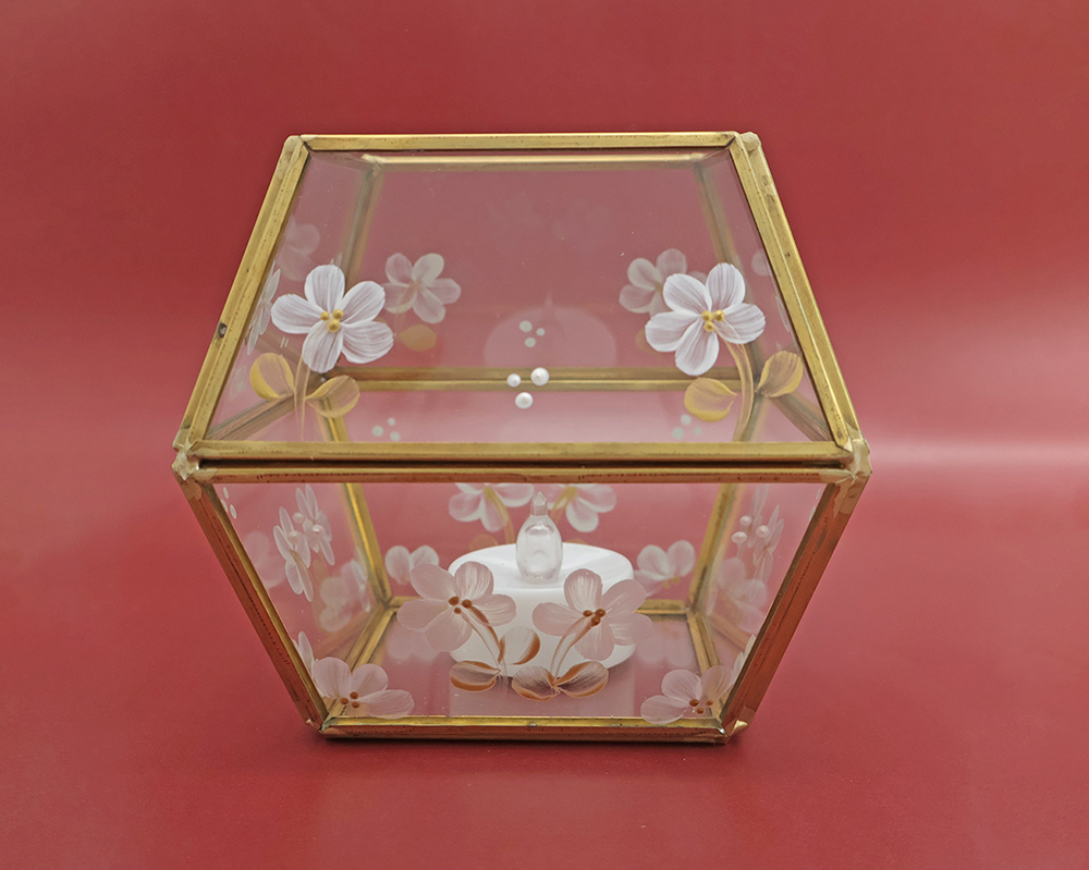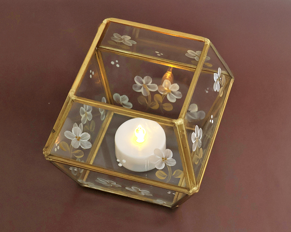 ミニサイズのグリーンやフェイクキャンドルが飾れるガラスケースです。