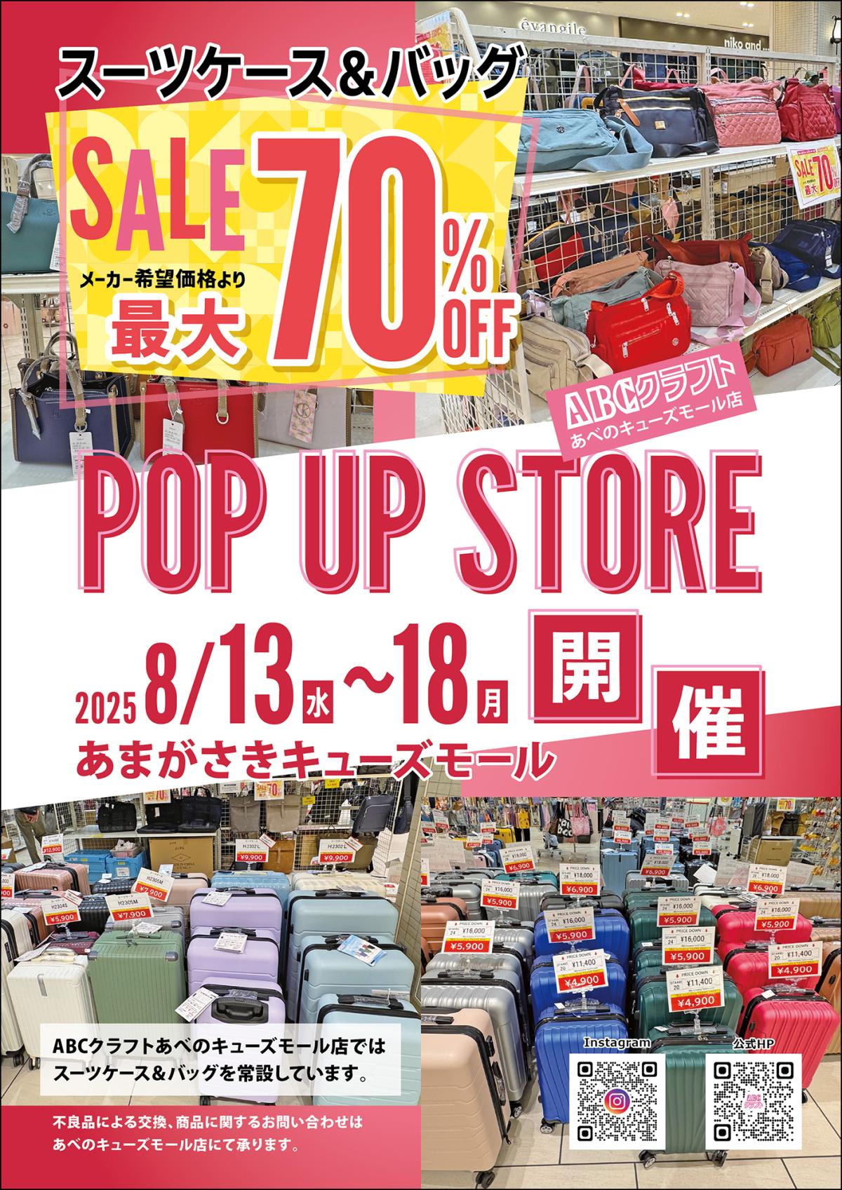 2025年8月13日(水)~18日(月)にあまがさきキューズモールにてPOP UP SHOPを開催。