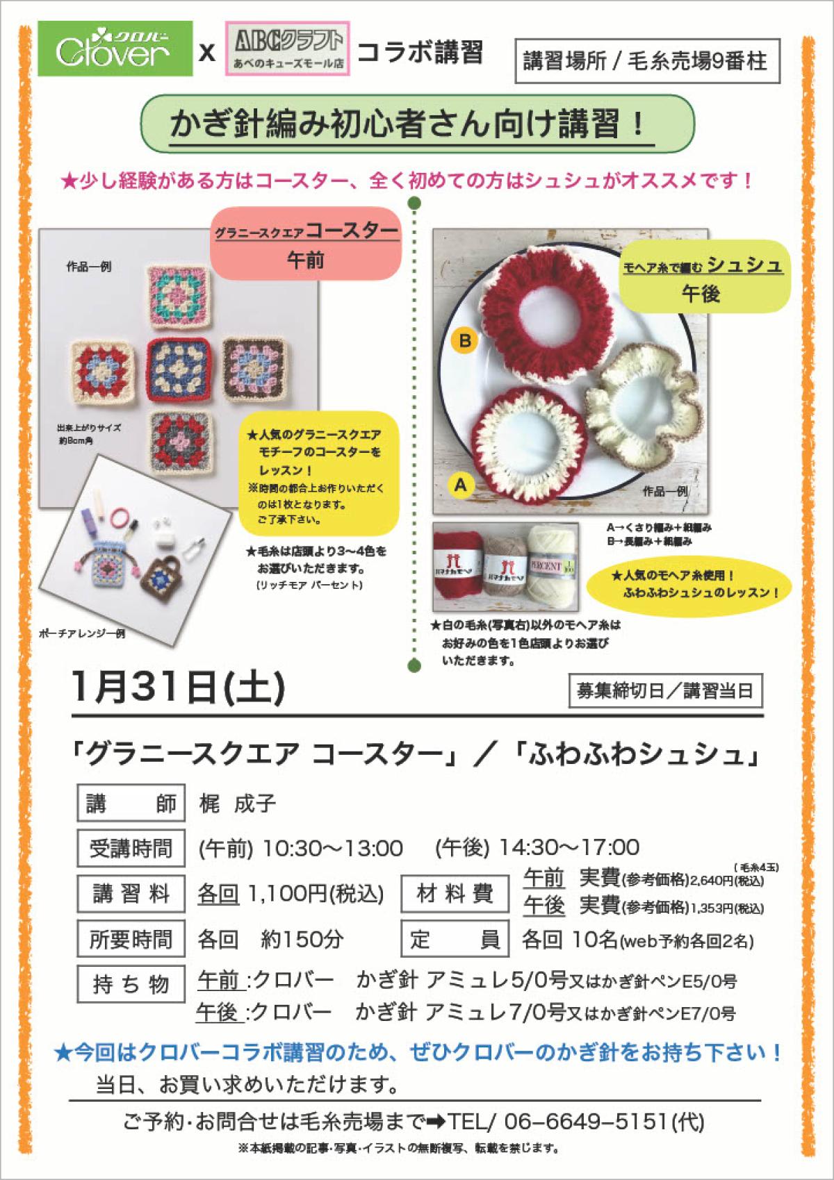 1/31(土) クロバー×ABCクラフト コラボ編物講習会